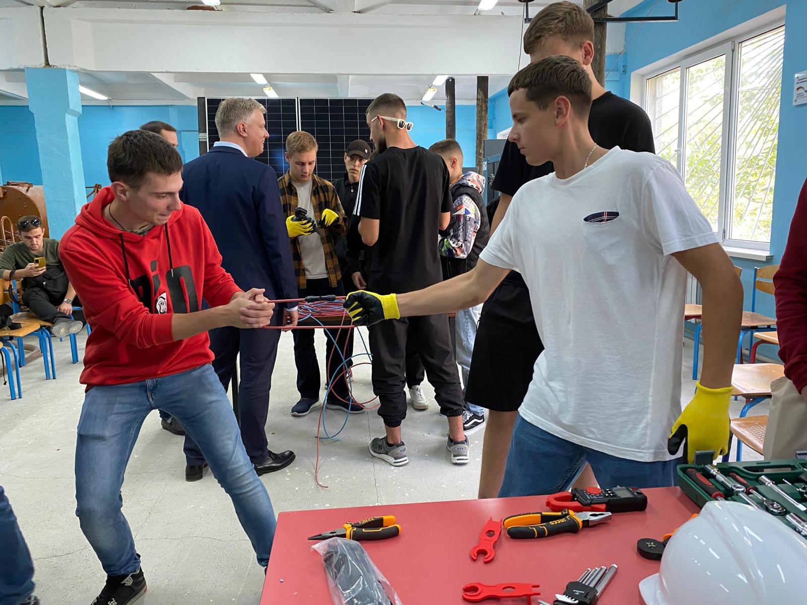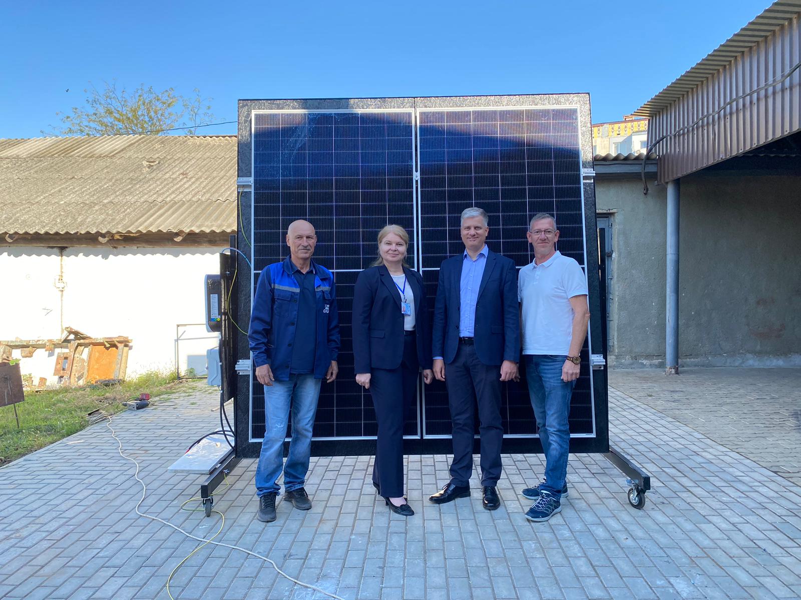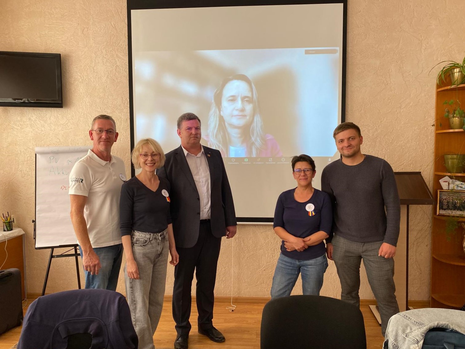 Im nächsten Schritt fand ein Onlinemeeting mit den einzelnen Akteuren statt, um ihre Erwartungen zum Projekt auszutauschen. Darunter war Marcel Blessing-Shumilin, die Direktoren der Berufsschulen, die Dolmetscherin, der PV-Installateur der schulischen Anlagen Valeriu Juratu und Bert Rümpel.