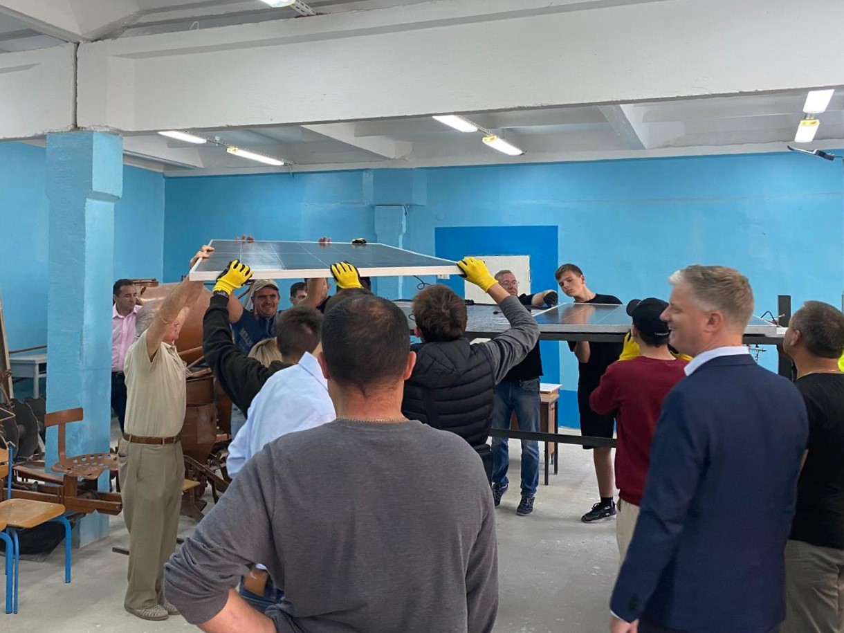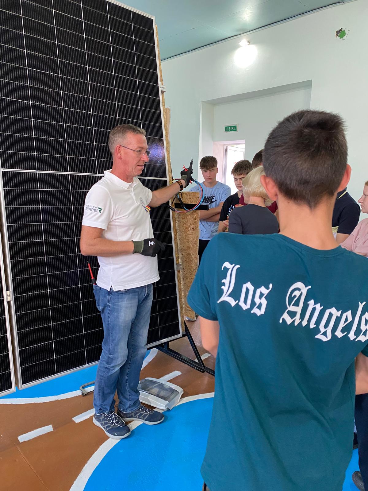 Nach einer ruhigen ersten Nacht im Hotel begann der erste Schulungstag gleich 9 Uhr in der Berufsschule Școala Profesională nr. 2 din mun. Cahul. Bert Rümpel wurde durch die Direktorin, Lehrer und Schüler herzlich empfangen. Zuerst wurde er durch die Schule geführt und hat die Klassen- und Fachräume sowie die Werkstätten kennengelernt. Im Anschluss startete der theoretische Teil. Eine externe Dolmetscherin übersetzte live vor Ort simultan den Vortrag von Bert Rümpel für die Schüler von Deutsch in Rumänisch. Er sprach darüber wie die Stromerzeugung mit Photovoltaik in Deutschland funktioniert, über die Entwicklung in Deutschland, die Erfahrungen und die Möglichkeiten in der Republik Moldau. Er gab Kostenbeispiele für kleine und große Anlagen sowie Hinweise wie eine gut funktionierende Photovoltaikanlage zu planen und worauf zu achten ist. Erfolgreich ging der erste Tag ging gegen 17 Uhr zu Ende.